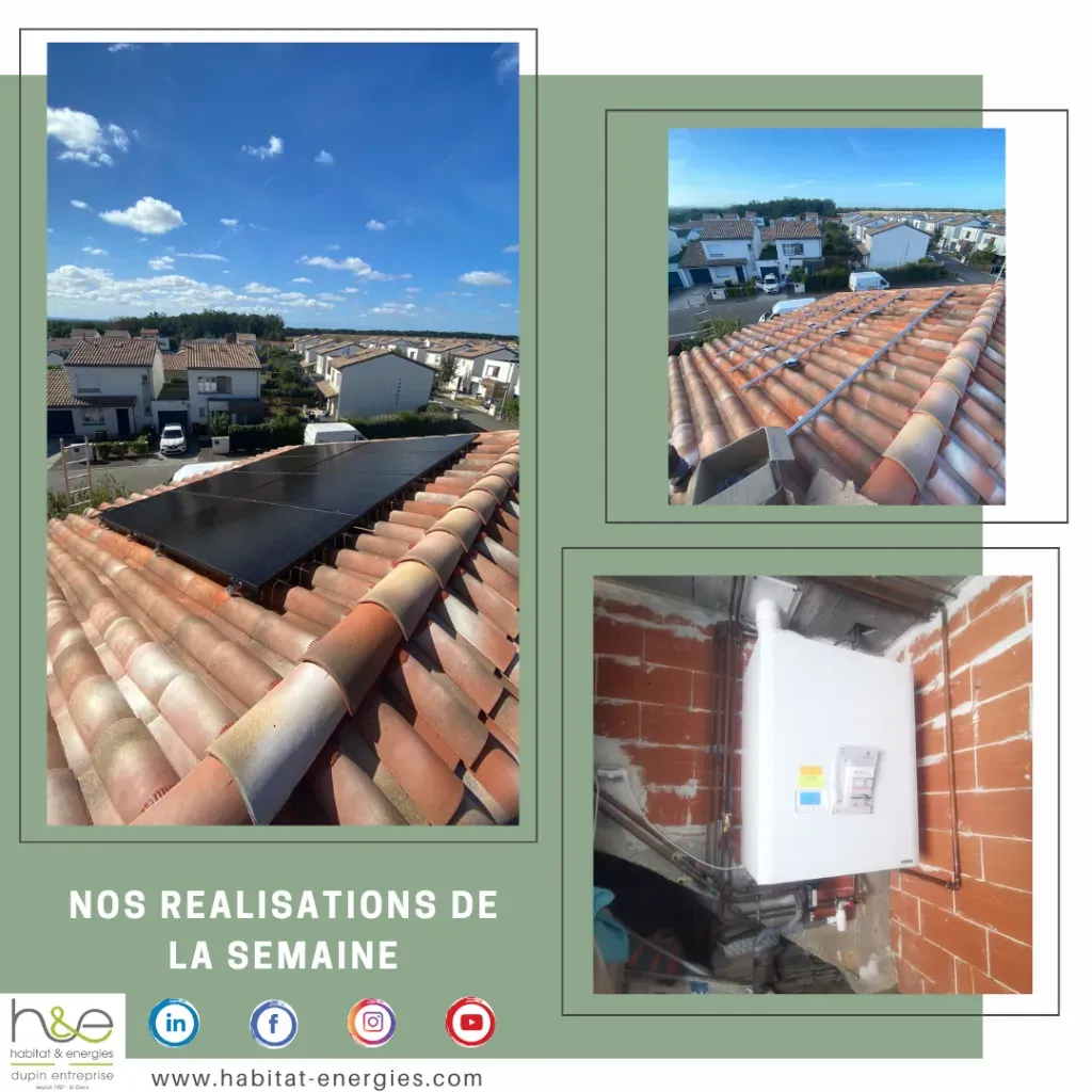 A Frouzins 31270, installation de 12 panneaux 375 W, d’une puissance totale de 4.5 kWc, ainsi que l’installation d’une borne de recharge Green Up et à Colomiers 31770, installation de 8 panneaux 375W, autoconsommation avec Enphase.